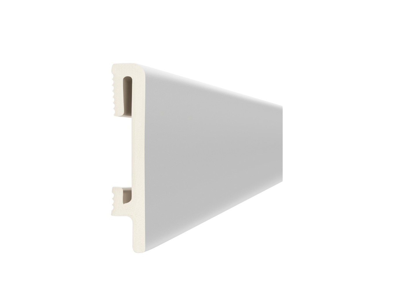 Listwa DuroFit jest produktem gotowym, od razu przeznaczonym do montażu. Została fabrycznie pokryta wysokiej jakości, ochronną powłoką, dzięki czemu nie wymaga dodatkowego gruntowania ani malowania powierzchni. Montaż jedynie na klej znacząco ułatwia i przyspiesza proces instalacji. Od wewnętrznej strony listwa posiada specjalne, poziome szczeliny wzdłuż całej szerokości, które ułatwiają nakładanie i rozprowadzanie kleju po powierzchni. Dedykowane linie znajdują się zarówno w górnej jak i dolnej części listwy, co przekłada się bezpośrednio na trwałe i stabilne mocowanie do powierzchni.